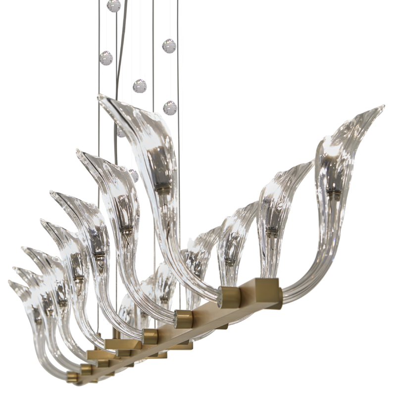 Various models and finishes. The Chill Out is a dire eye-catcher due to its glass fixtures and crystal details. Each and every detail of the fixture is crafted with the utmost care and precision, resulting in a flawless finish. The open structure offers a versatile luminary, which may be thought of as an abstract chandelier. The Chill Out has a more classical touch, and is fitted with high-quality crystal. It is best described as beautiful piece of design, perfectly suited for the more classical interiors, or on the contrary, a twist to a more modern interior design.
