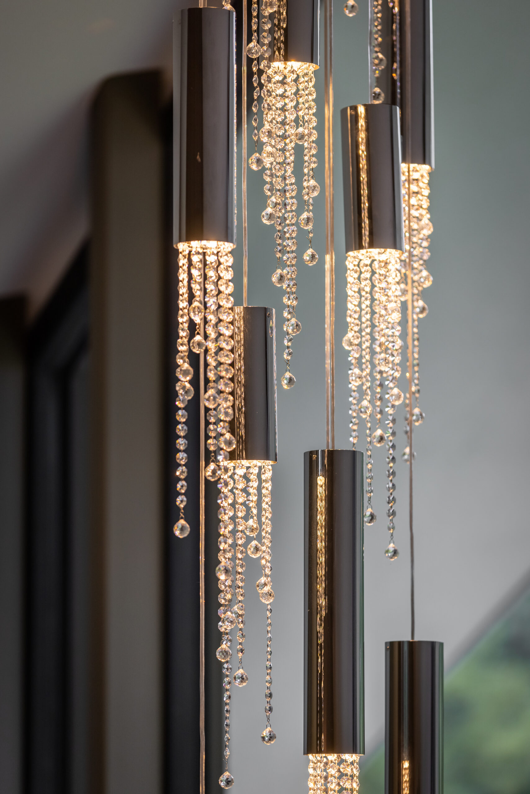 The design luminaire is complemented by enchanting crystals that provide its luxurious look. Full customisation is possible, allowing the lighting fixture to be tailor-made. A dazzle you cannot ignore, yet it is a subtle, sophisticated addition to your interior.